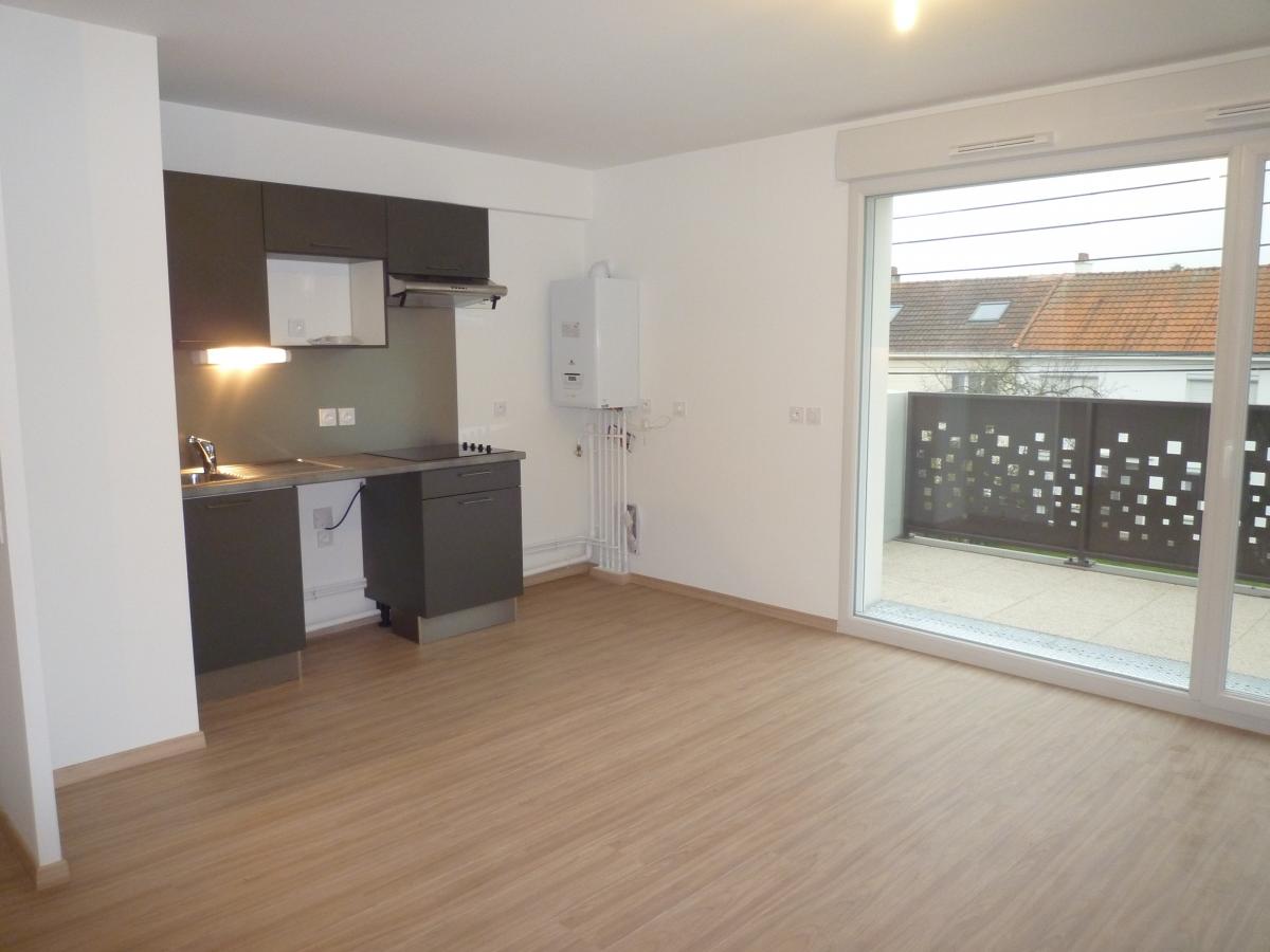 REZE Naudière - Appt T3 comprenant : Entrée,séjour avec coin cuisine équipée  26.53 m2 ouvrant sur balcon 6 m2 , dégagement avec placard,  2 chambres 11 et 10 m2 , salle de bains, wc, chauffage gaz, parking couvert et parking aérien -