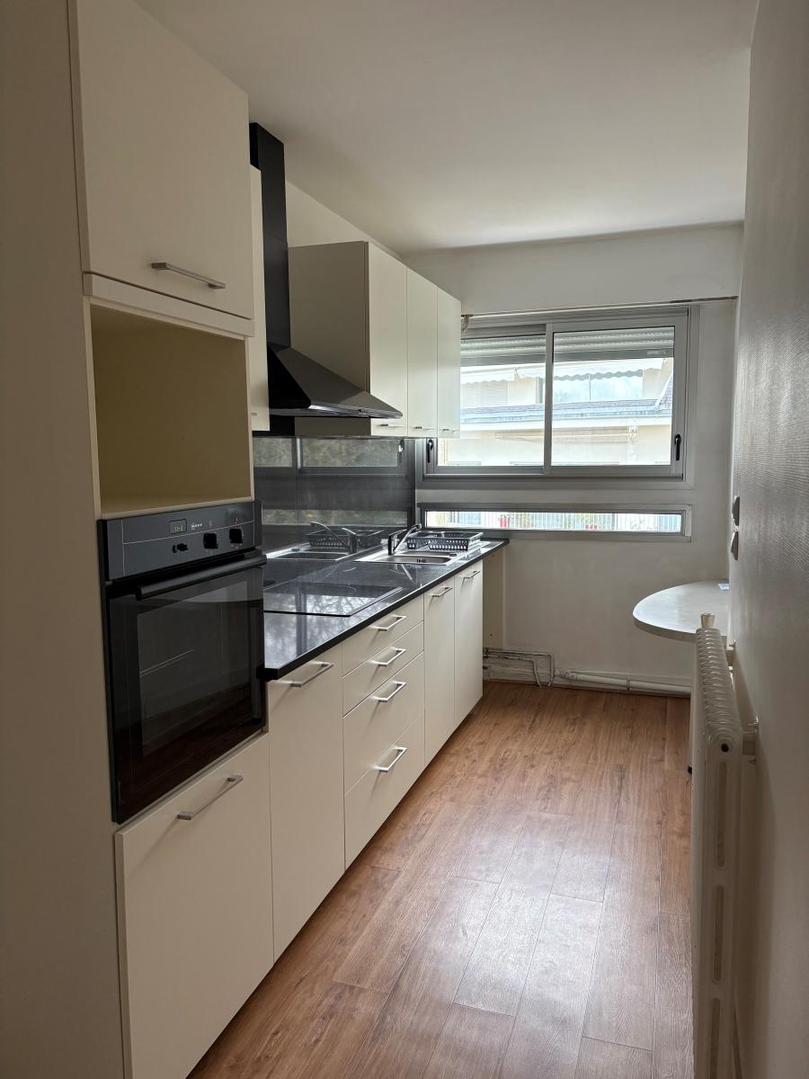 Un appartement de type 4 au 4ème étage ASCENSEUR comprenant entrée avec placard, séjour, cuisine séparée aménagée, 3 chambres, salle de bains et WC séparées. Cave et place de parking en sous-sol