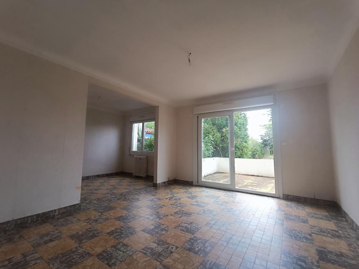 Au rez-de-chaussée : une entrée et un séjour double, une cuisine aménagée de 9,95 m² : plaque , hotte et placards, deux chambres (9,40 m² - 10,05 m²), une salle d'eau et un W.C, Un garage attenant à la cuisine permettant l'accès à l'étage.