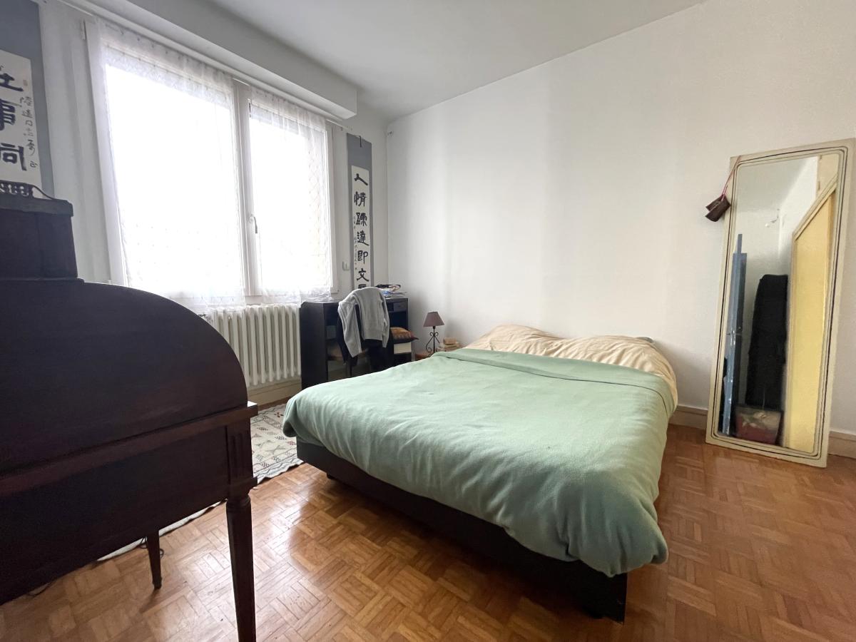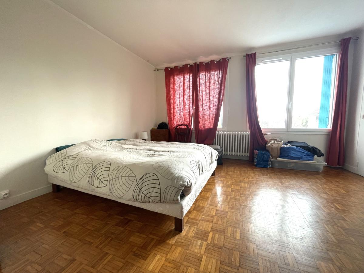A l'étage : Palier avec placard ( 6.74m²), deux chambres avec placards ( 17.12m² et 11.34m²), salle de bains avec WC ( 4.07 m²).