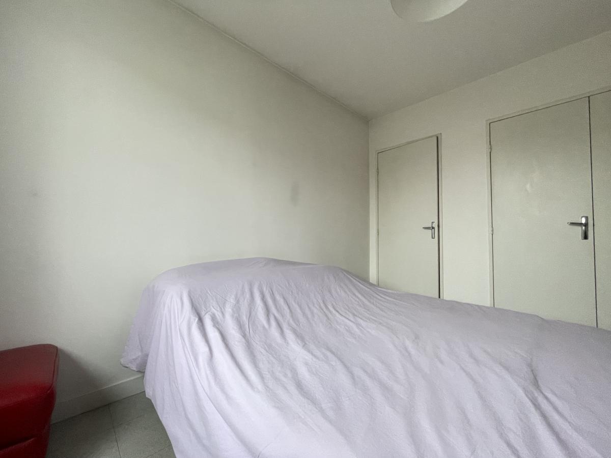 Au rez-de-chaussée : une entrée et une chambre avec deux placards.
