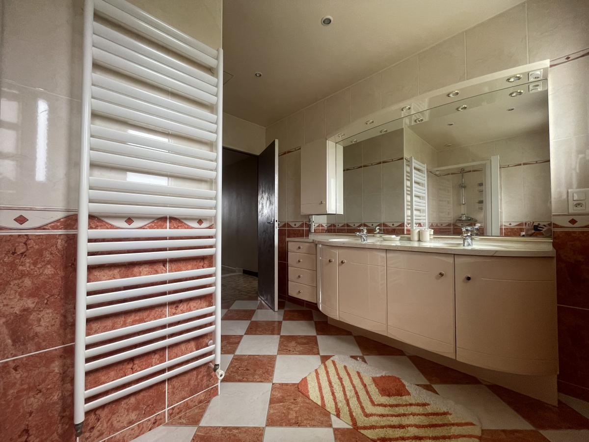Au rez-de-chaussée, une entrée accueillante ainsi qu’une chambre disposant de deux grands placards. Vous y trouverez également un vaste garage de plus de 50 m², situé au même niveau, offrant de nombreuses possibilités : stationnement, espace de rangement, atelier ou aménagement complémentaire.