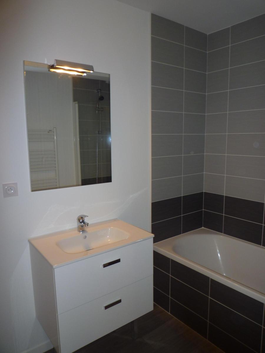 A REZE, Quartier Trocardière, dans une résidence 2015, au premier étage sans ascenseur, un appartement de type 3 de 62.4 m² comprenant une entrée, une pièce de vie de 25.6 m² avec cuisine aménagée et équipée (hotte, plaques et frigo), deux chambres (dont une avec placard de 11 et 10 m²), une salle de bains (baignoire et sèche-serviette), W.C, un rangement avec emplacement machine à laver et chaudière.
