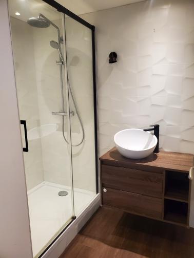 La partie nuit se compose d’un dégagement avec rangement, d’une salle d’eau moderne, et de deux chambres, offrant confort et tranquillité.