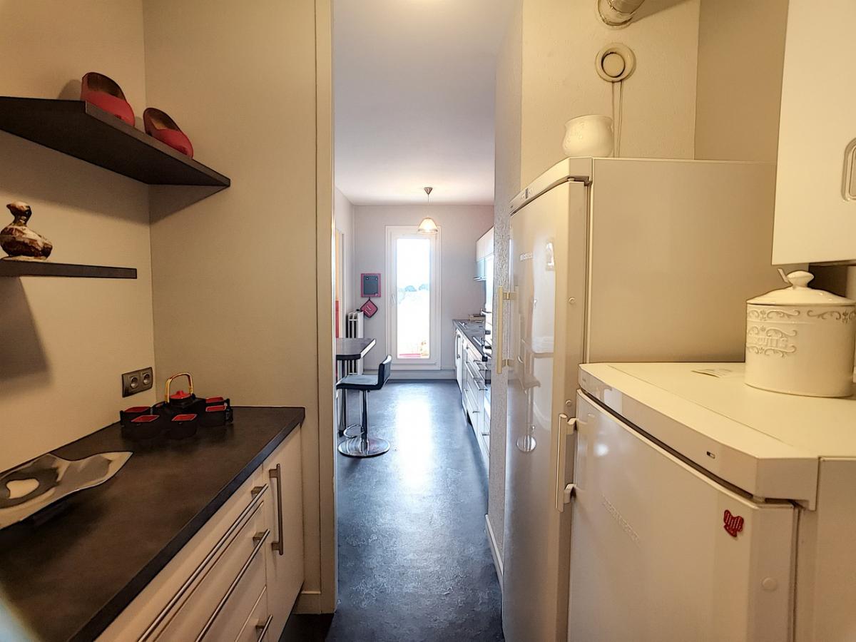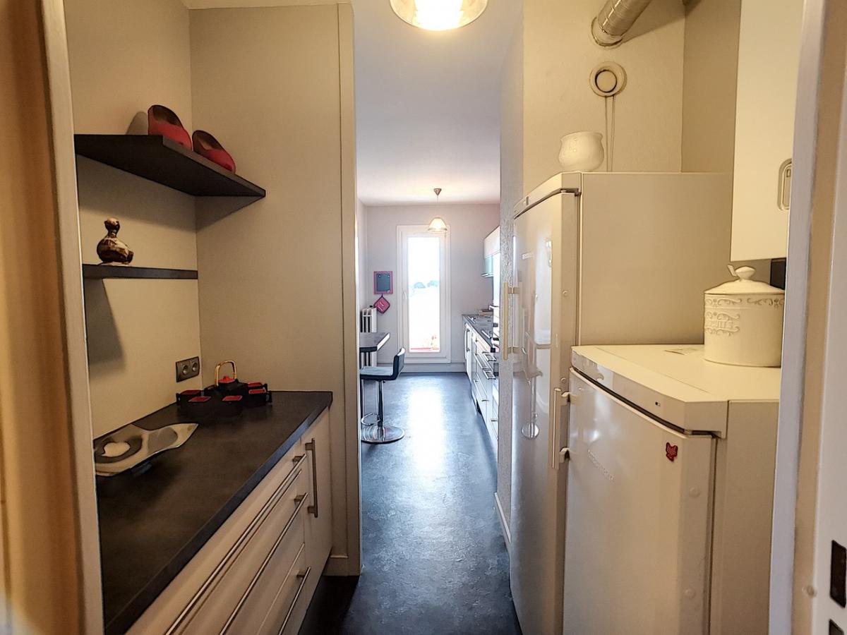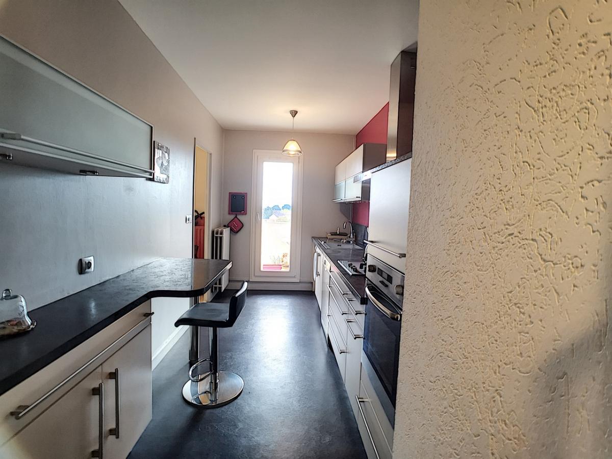 A REZE, Trois Moulins - Au 4ème étage , un appartement de type 3/4 de 82 m² comprenant une entrée, une cuisine aménagée et équipée (four, plaques, hotte, lave-vaisselle), un salon séjour (possibilité de fermer pour faire une chambre supplémentaire) sur parquet flottant, WC séparés, une salle d'eau, deux chambres, un dégagement avec placard, un grand cellier. Une place de parking. ASSURANCE LOYERS IMPAYES