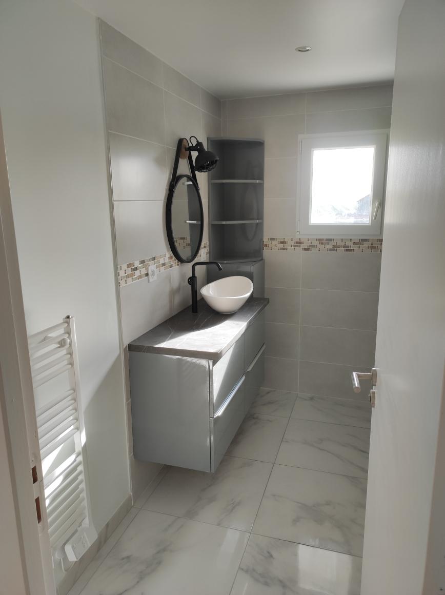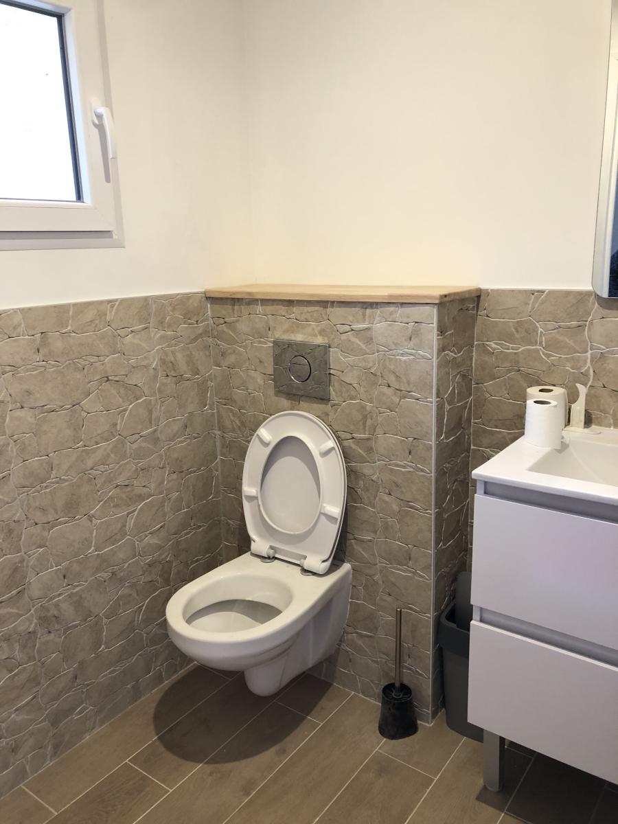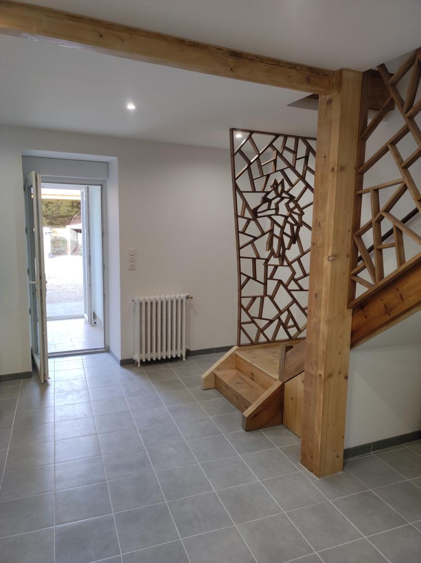FROSSAY Bourg - Loue Maison T5 rénovée comprenant - Entrée sans séjour-salon, cuisine aménagée et équipée (four plaque hotte frigo), wc avec lave mains