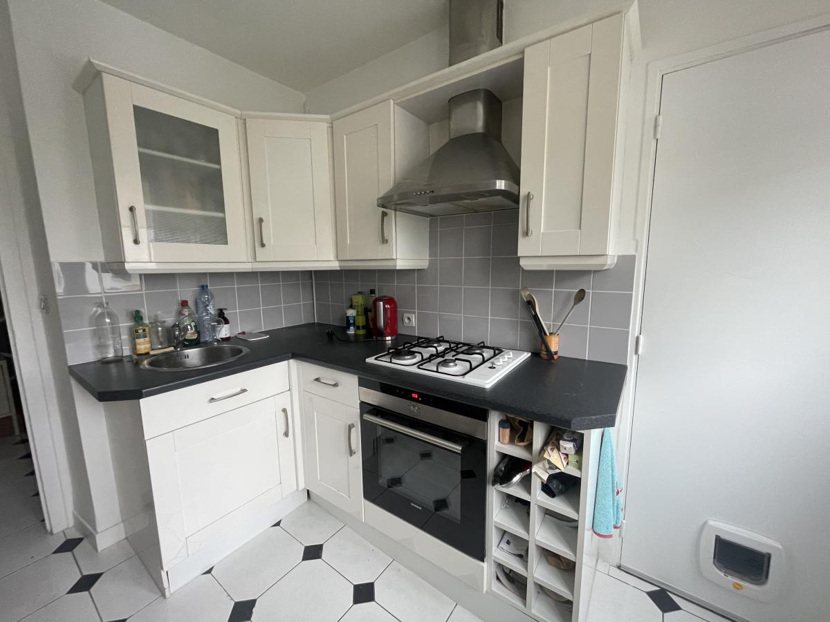 La cuisine, entièrement meublée et équipée avec hotte, four et plaques, bénéficie également d’un séchoir attenant, pratique pour l’organisation du quotidien.