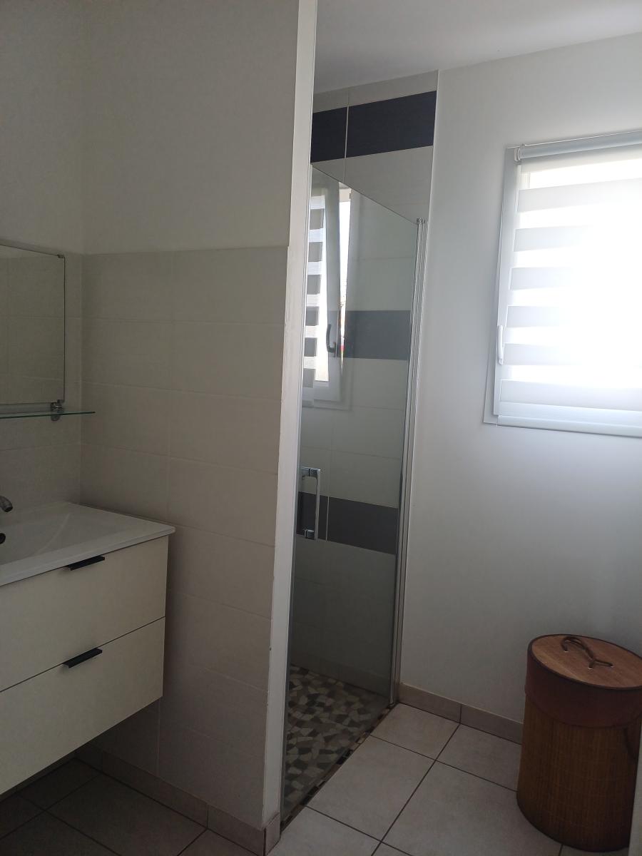 Une entrée, un salon/séjour (33,78m2)avec une cuisine ouverte aménagée (7m2), un dégagement desservant deux chambres (10,37 et 9,87m2), une salle d'eau (4,23m2) et des WC.