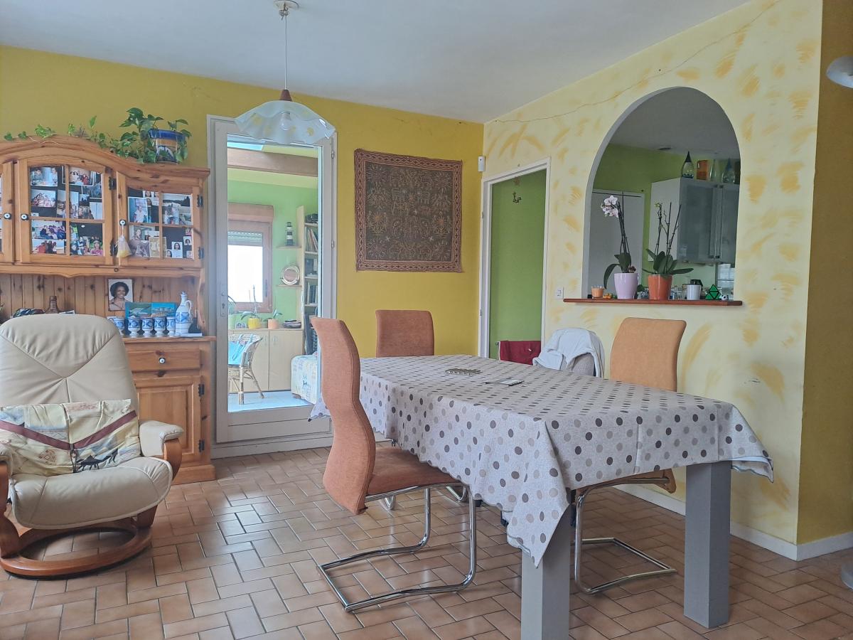 Dans un quartier résidentiel, agréable maison sur une parcelle de 353 m² se composant au rez-de-chaussée d'un salon-séjour avec cheminée, une cuisine aménagée et équipée, un W.C., une extension de 2007 servant de chambre-bureau et un garage.