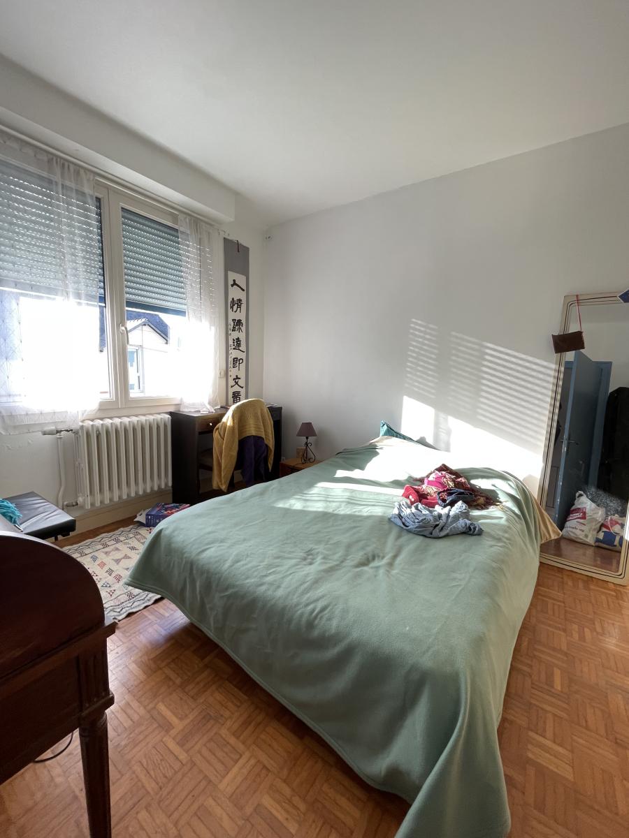 A l'étage : Palier avec placard ( 6.74m²), deux chambres avec placards ( 17.12m² et 11.34m²), salle de bains avec WC ( 4.07 m²).