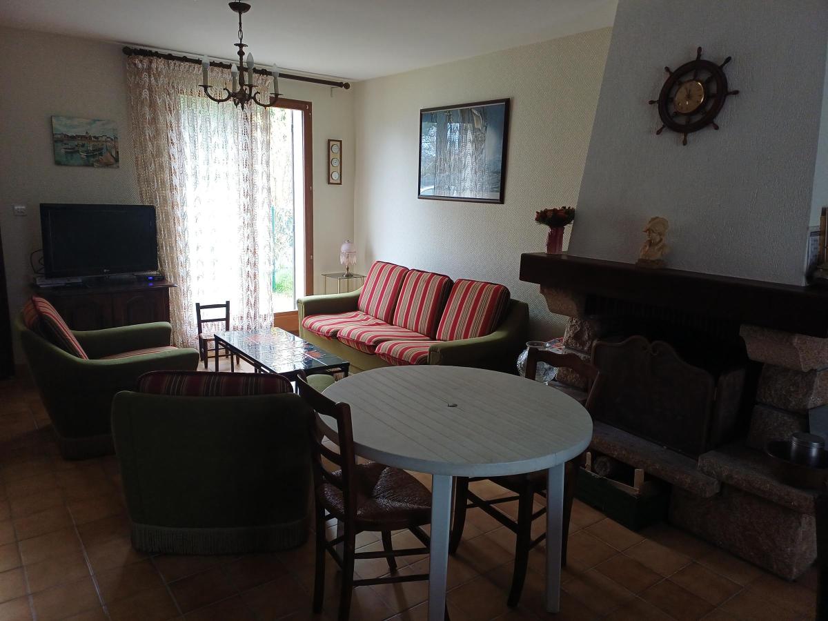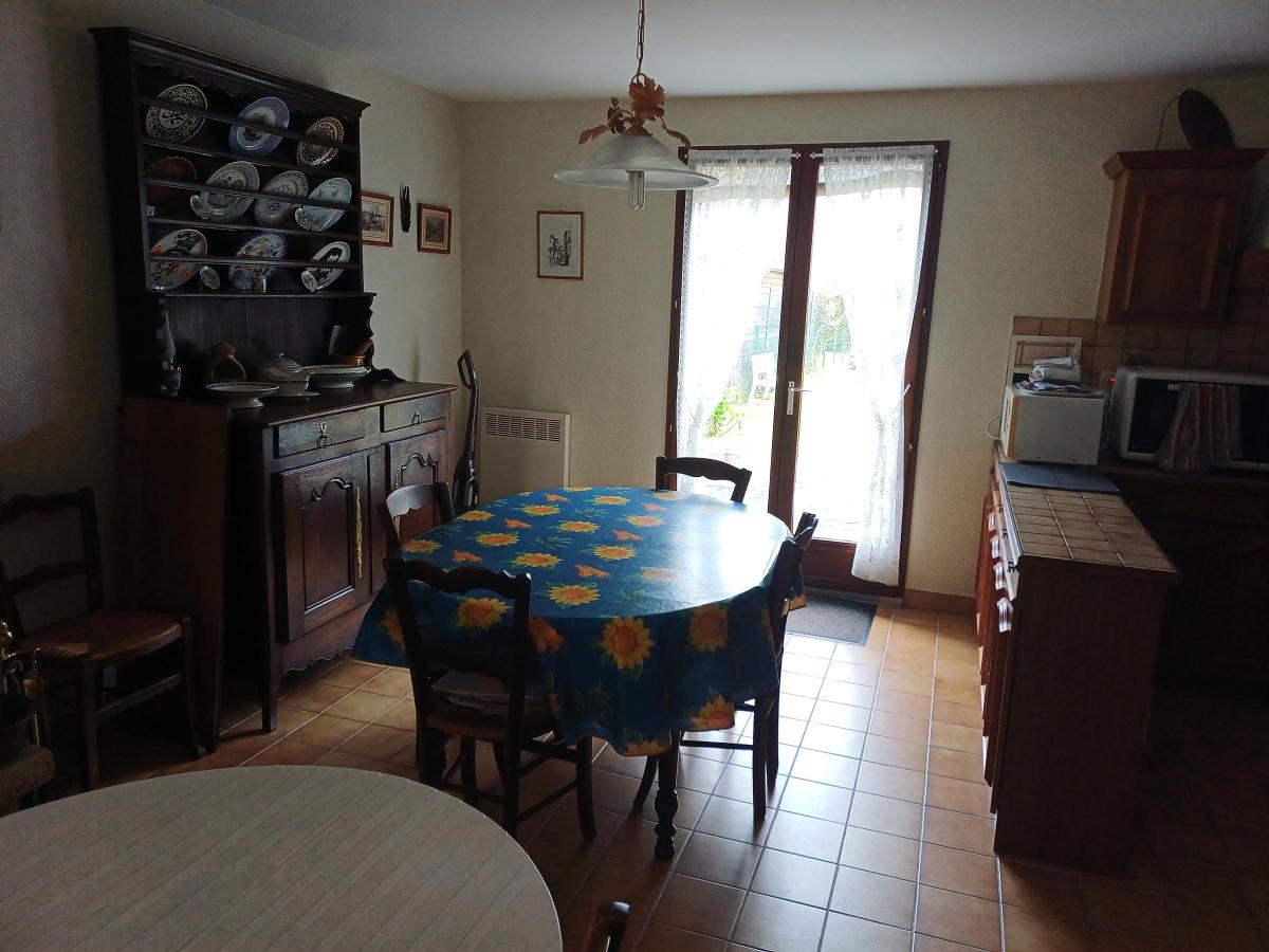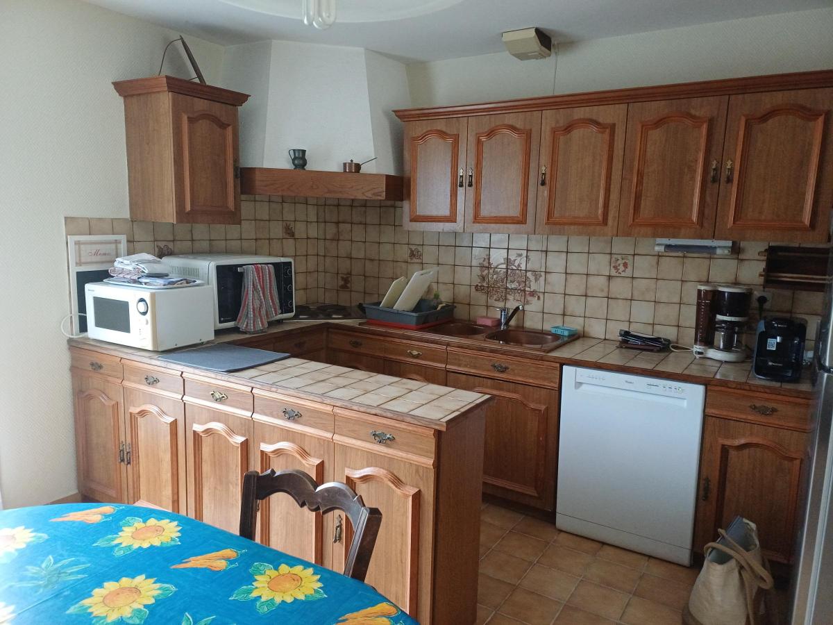 - Au rez-de-chaussée : un séjour avec cuisine ouverte aménagée et équipée, une salle de bains et WC, deux chambres.