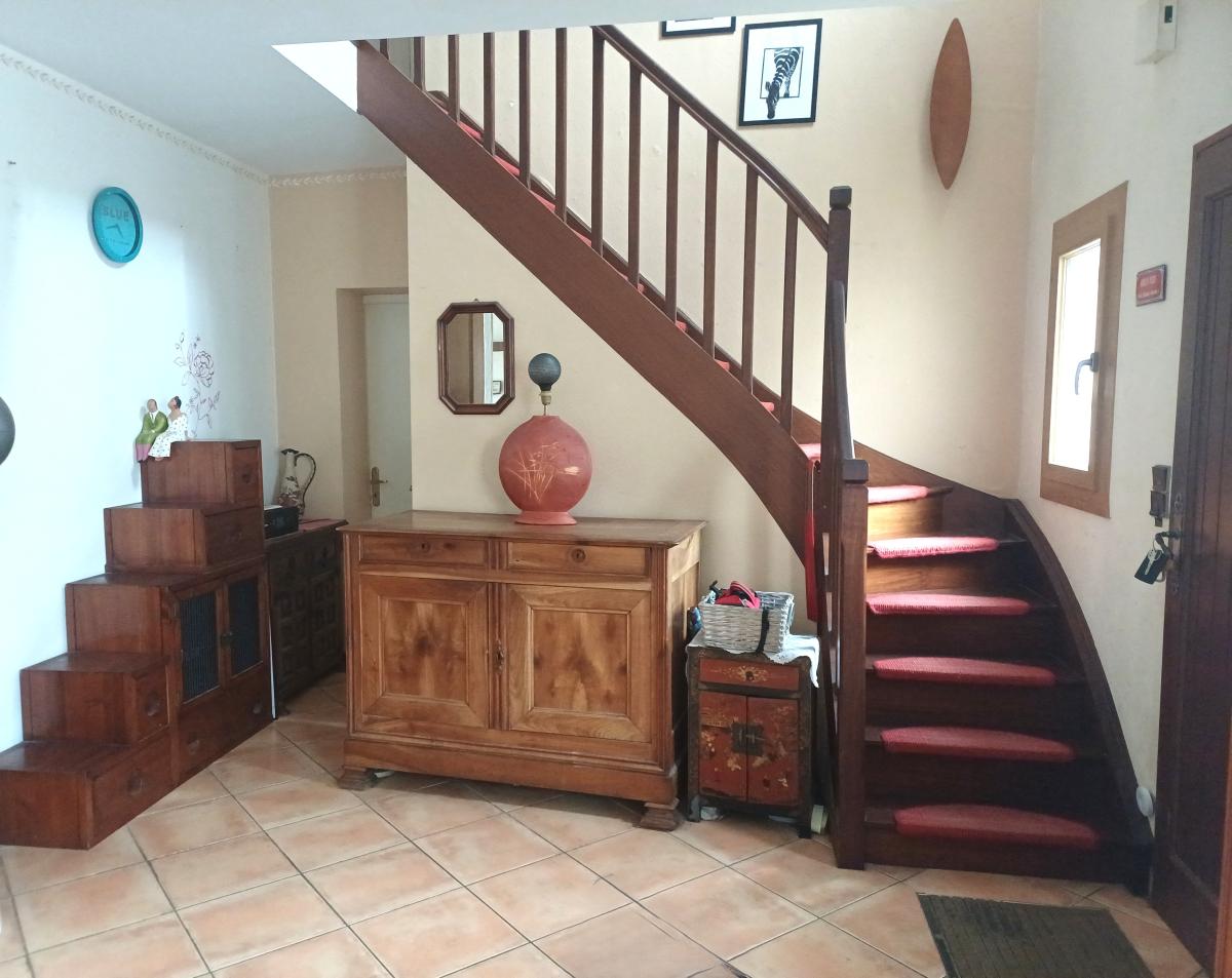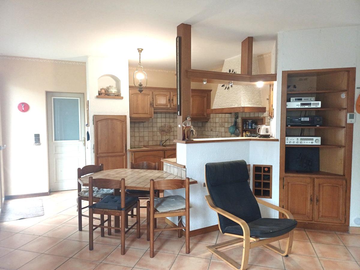 - Au rez-de-chaussée : un hall d'entrée donnant sur un salon et séjour traversant (avec cheminée insert) une cuisine ouverte, une arrière-cuisine, un dégagement desservant une chambre avec un coin douche, un wc.