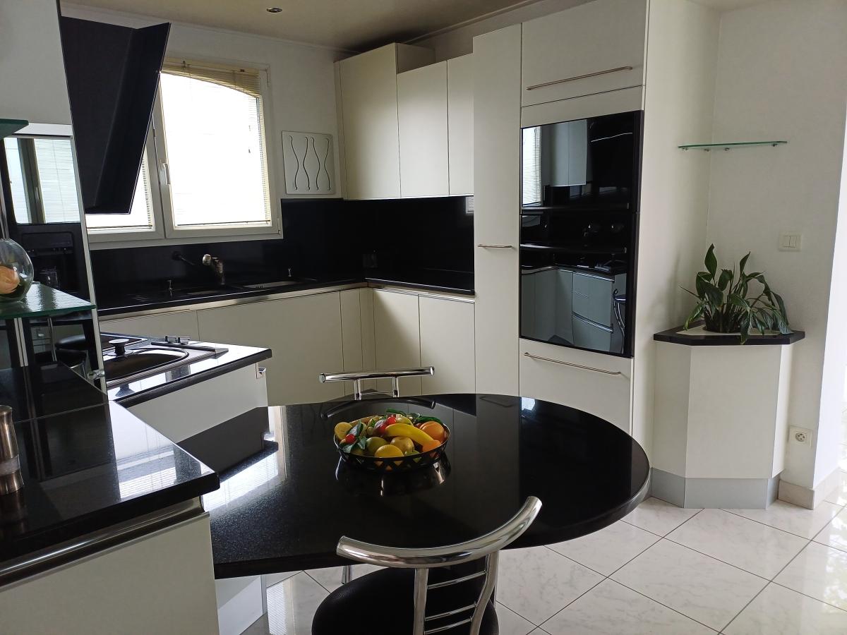 Une cuisine aménagée et équipée, prolongée par une véranda baignée de lumière,