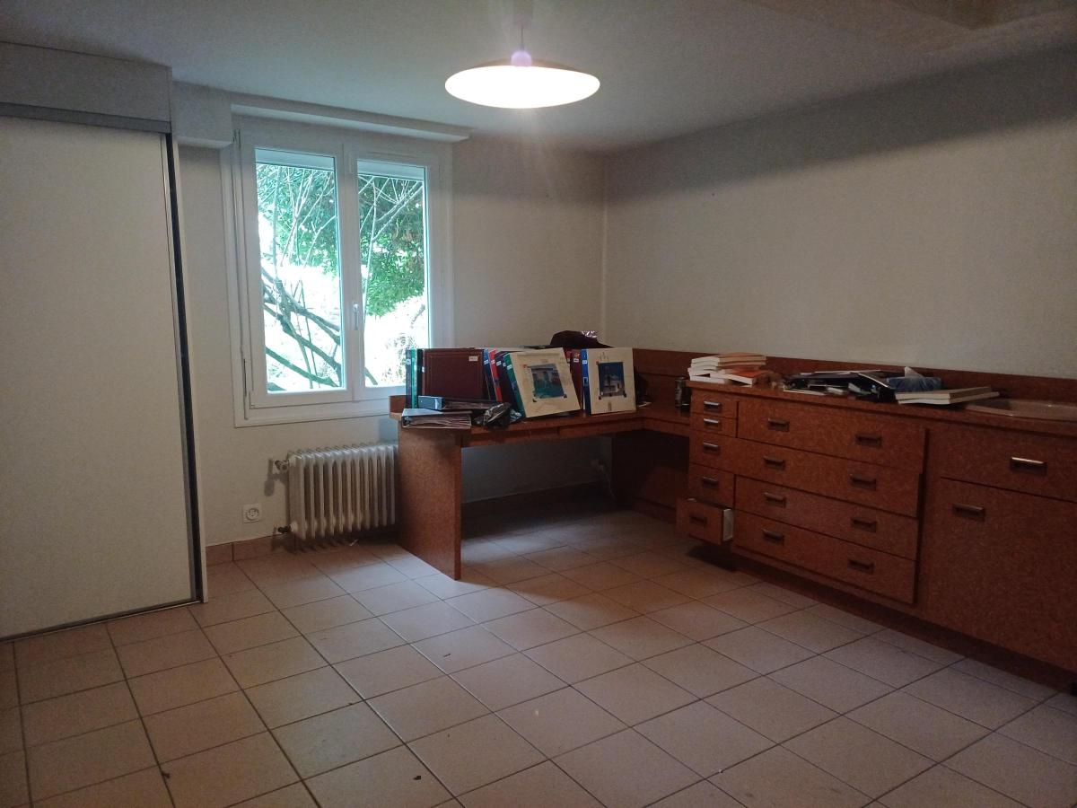 - Au rez-de-chaussée : un hall d'entrée, un wc, une pièce bureau, une grande buanderie/chaufferie, un dégagement, une pièce avec un point d'eau, une pièce salon donnant sur le jardin.