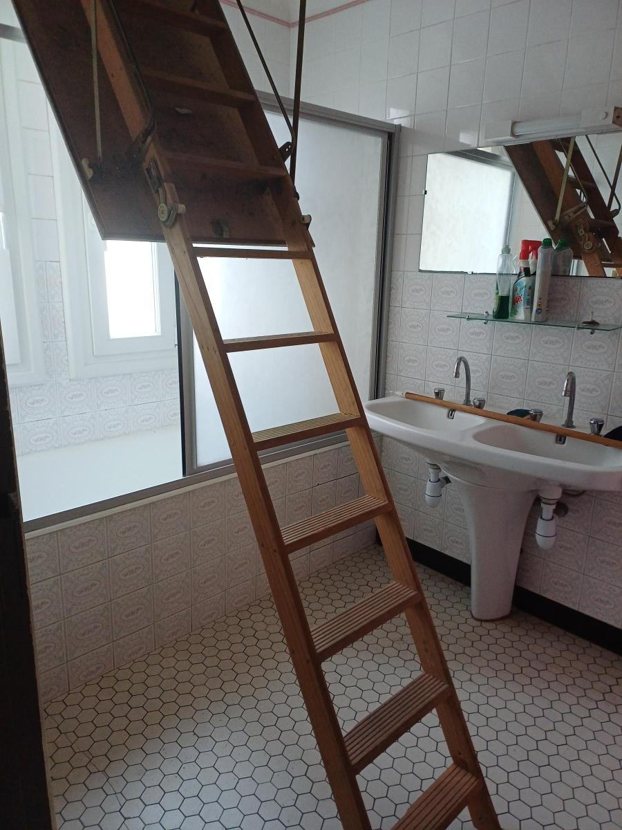 - A l'étage : un hall d'entrée, un salon/séjour avec cheminée à foyer ouvert, un dégagement avec placard, une première chambre avec une salle d'eau + wc privatif, une cuisine, un dégagement desservant trois chambres, une salle de bains (avec un accès aux combles), un wc.