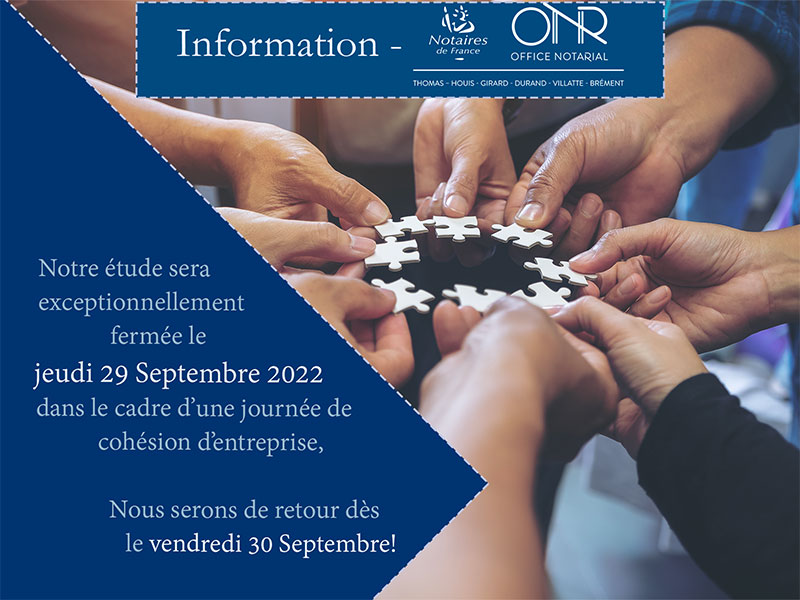 Publié le : 28/09/2022 28 septembre sept. 09 2022Actualités de l'étudeNotre étude sera exceptionnellement fermée le 29 Septembre 2022 dans le c...